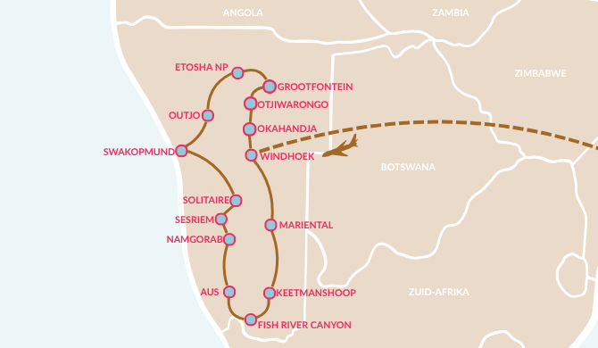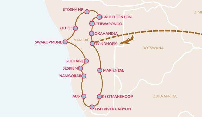 - Transfer van de luchthaven naar je hotel in Windhoek
