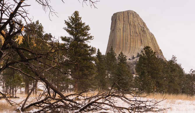 Het Devils Tower National Monument is een bijzonder rotsformatie en is zeker ook in de winterperiode het bezoeken waard. De rotsformatie is een heilige plek voor verschillende stammen Native Americans. Buiten het Visitor Center kun je informatie over de verschillende hikes vinden.