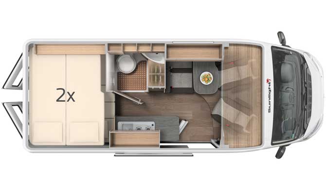 - Bed achterin de camper: 2x 210/205cm x 80cm